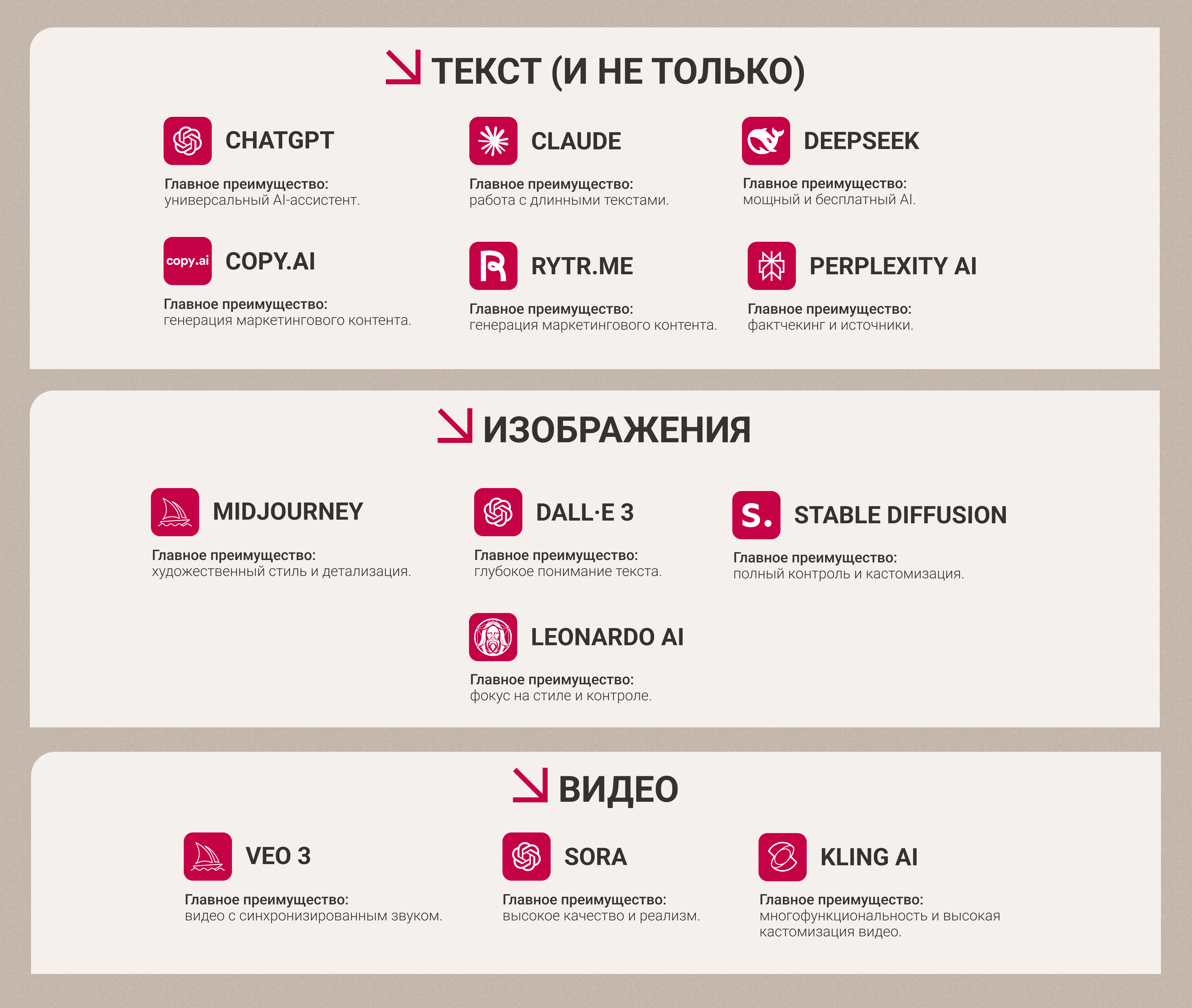 Собрали подборку нейросетей по категориям: от текстов до креативов.