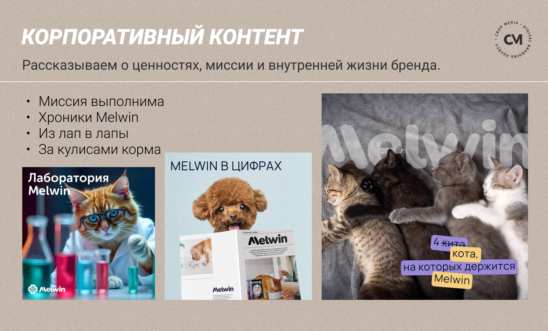 В рамках стратегии мы сместили фокус на ядро аудитории, сделали акцент на пользу, настроили работу с комьюнити — всё это нашло отражение в рубриках. Наполнили контент смыслами, отражающими ценности бренда, и создали фирменные рубрики в ToV Melwin. Результат: рост подписчиков, активное вовлечение и формирование образа бренда-эксперта.